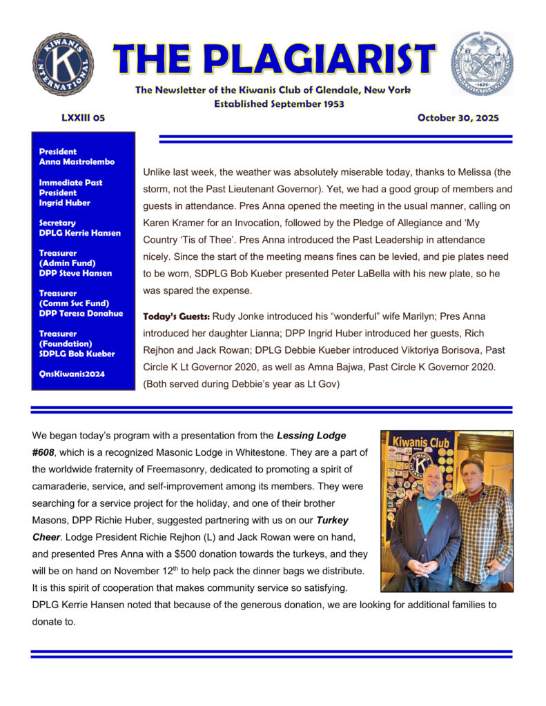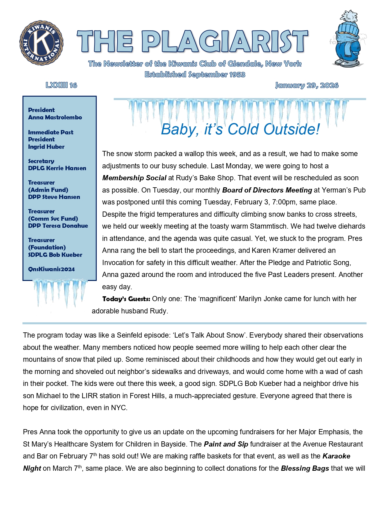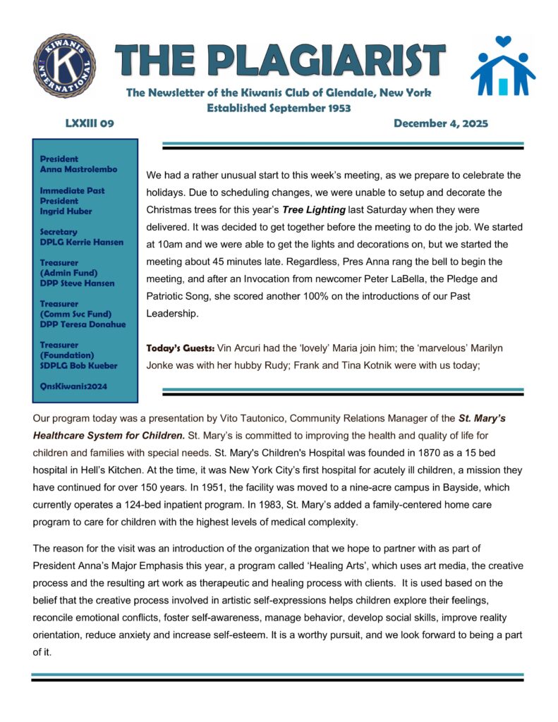 Kiwanis Club of Glendale NYKids need adults who care. That’s why people join Kiwanis clubs. They’re local NY groups of like-minded volunteers who make a difference. What's Kiwanis? Kiwanis Club of Glendale's Local Partnerships NY Local friends creating a generation of leaders When Kiwanis club members serve kids, they support the Kiwanis causes: health and nutrition, education and literacy, and youth leadership development. Thanks to those causes, members make an impact that lasts — from infancy to early adulthood. Our Monthly Calendar Read Our Newsletter Read More Read More Read More Read More Read More Read More View Full Newsletter "I was struggling as a single mother, but Kiwanis Club helped me out with food and helped my kid enjoy his childhood!" Samantha J. Kiwanis Club of Glendale Gallery View Full Gallery Join Our Facebook Group Follow Us on Facebook for Announcements! Kiwanis' International Partnerships